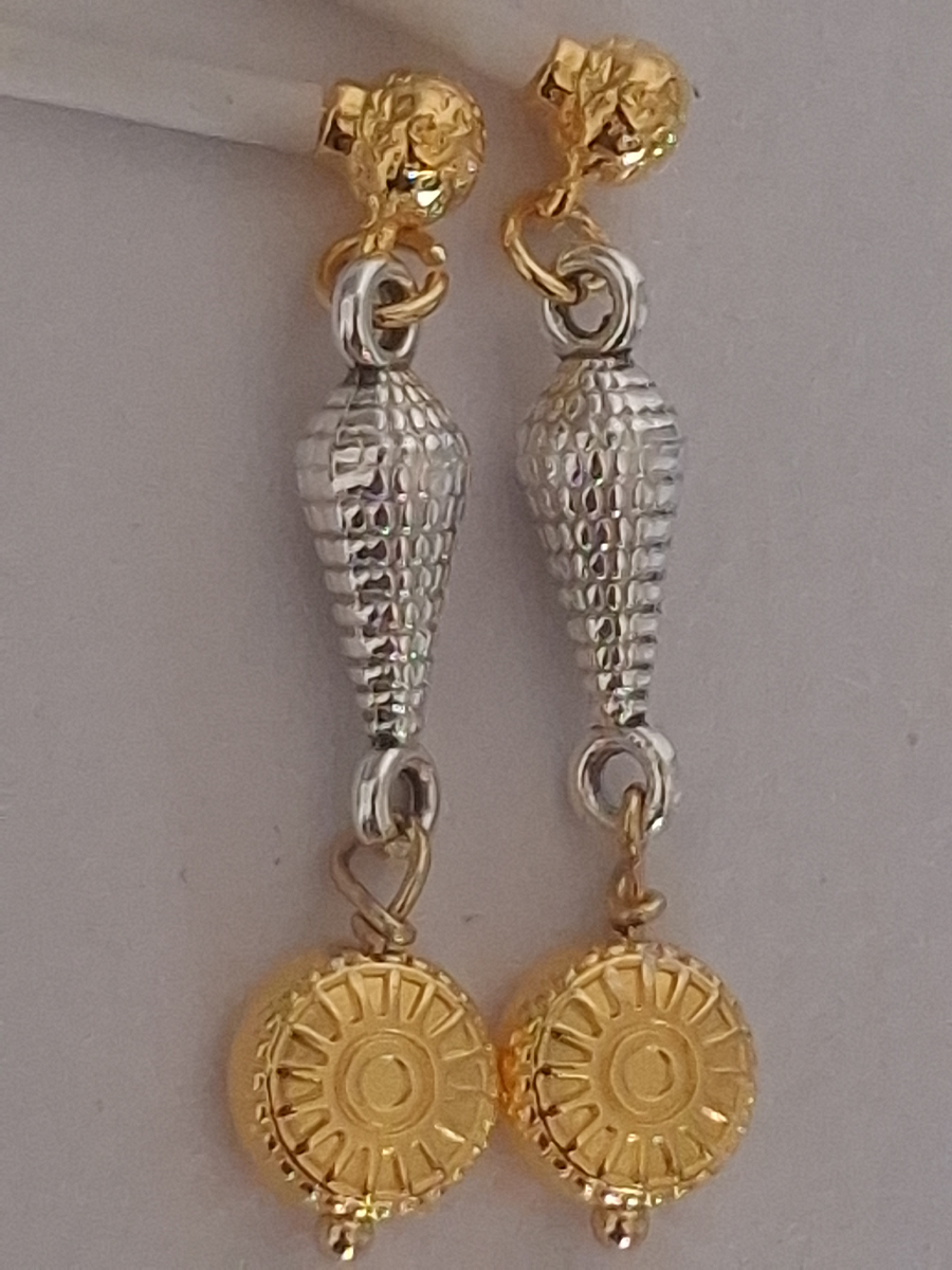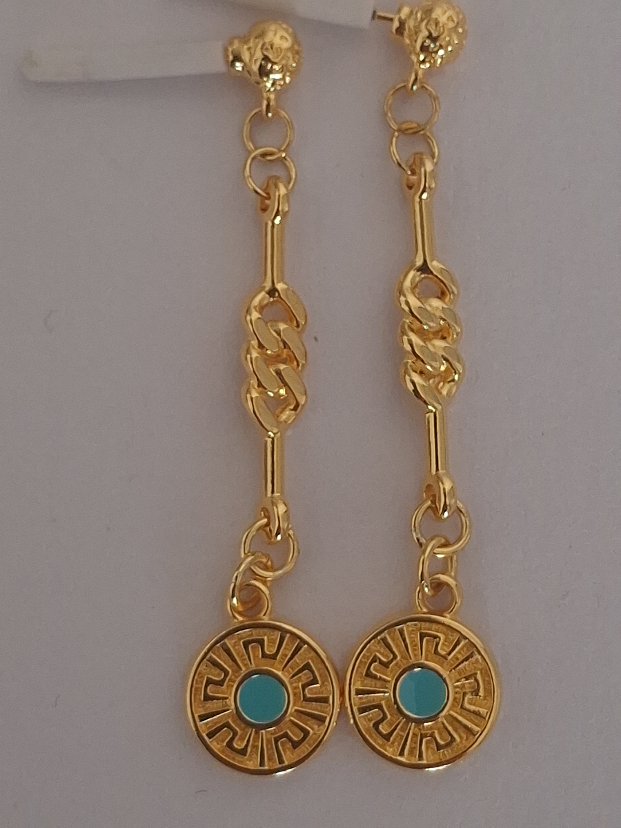 Σκουλαρίκια αλυσίδα κρίκων (20x5mm) με στρογγυλό με σμάλτο τυρκουάζ 11mm. Zamak 24k Gold plated (επιχρύσωση)