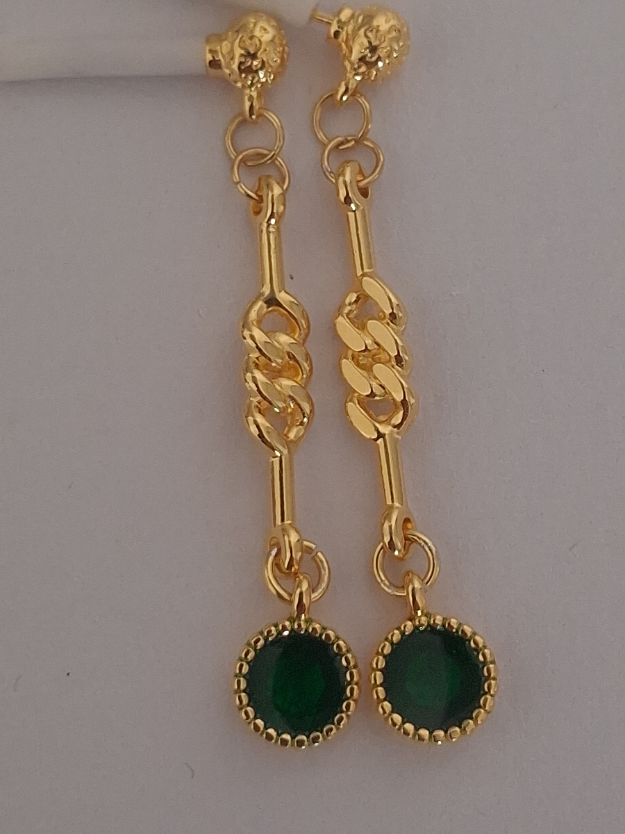 Σκουλαρίκια αλυσίδα με στρογγυλό πράσινο σμάλτο