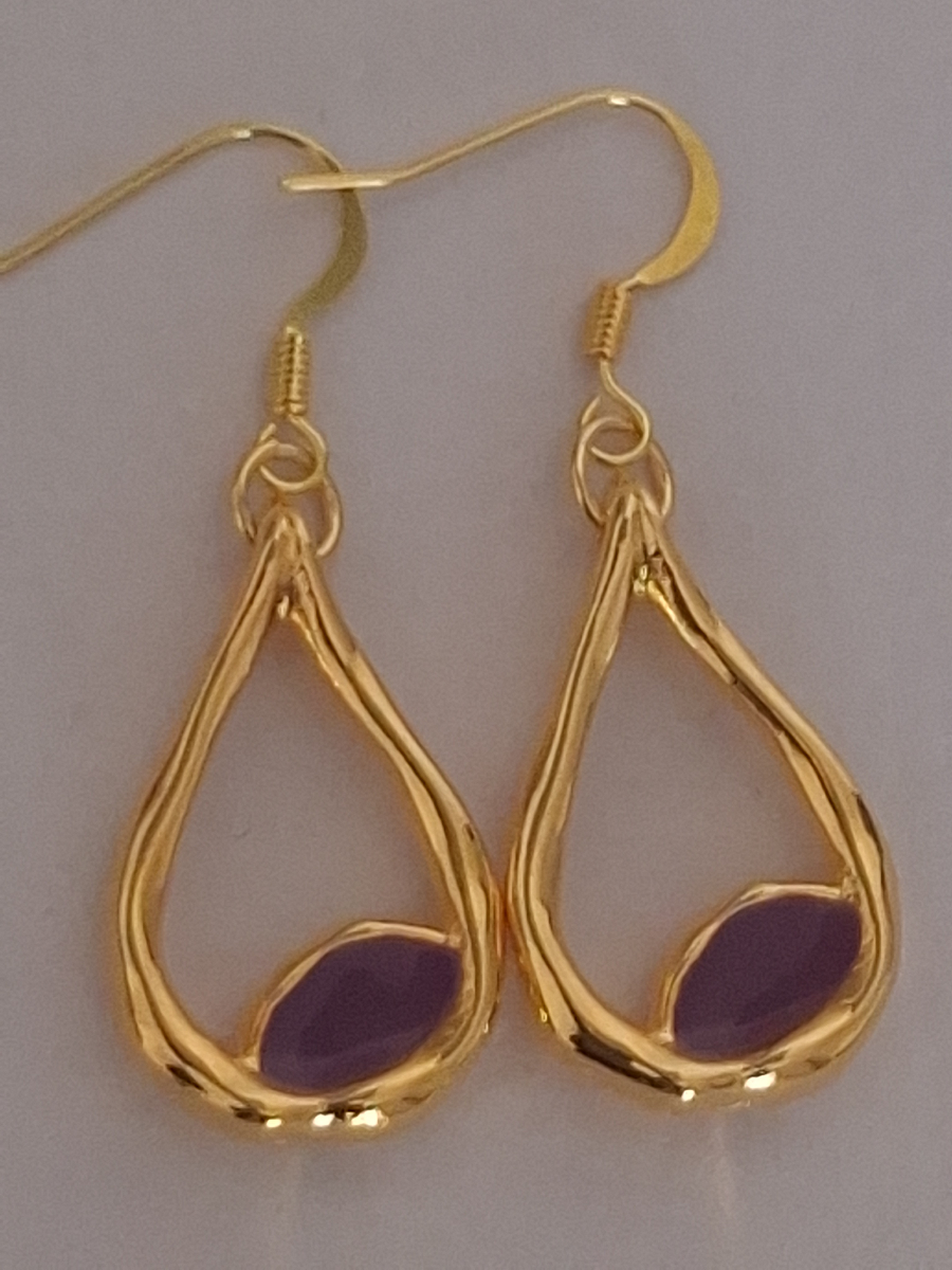 Σκουλαρίκια ρόμβος με μαύρο σμάλτο και σταγόνα